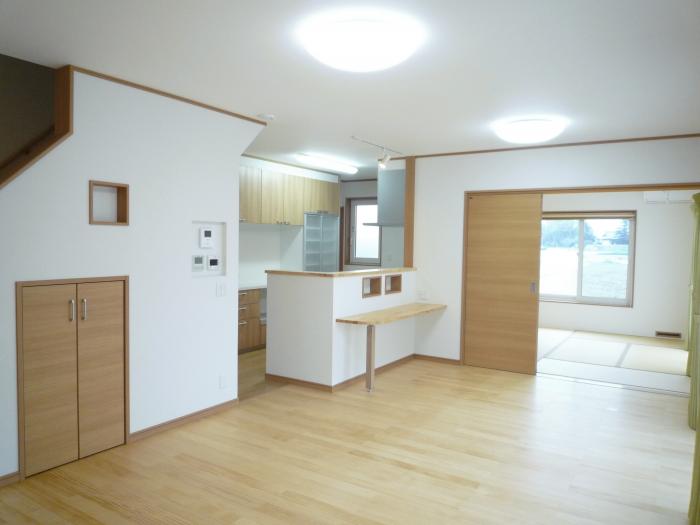 冬が寒すぎて、家造りを決心しました。住んでみて、以前の暮らしと全然違います。古い家は寒かったので暖かくて助かっています。当初「家中が同じ温度なので石油ストーブがいらない」と言われ半信半疑でしたが、引っ越していらないことがよくわかりました。ストーブ無しで物足りない感じもありません。寝る時の布団も冷たくなく、湯たんぽも不要です。 冬は若干乾燥気味になりますが、大きな物以外、部屋干しすると結構乾くので助かります。 「平屋」と「大黒柱」にこだわり、LDKでワンフロアにしたら、動きやすくて便利です。以前は床に座る生活でしたが、今はイスに腰かける生活なので体には良い感じがしています。 他社のモデルハウスを色々見学しましたが、調度品はすごく立派ですがみんな同じ感じがしました。『いい家が欲しい』の本がきっかけで、広瀬さんの展示場を冬に見学に行ったら何より暖かかったです。他社はセールスマンの営業が嫌でしたが、広瀬さんは営業マンらしくない所も良かったです。 お風呂・トイレも快適で掃除もラクです。非暖房の食品庫も便利です。移動もラクなので平屋で良かったと思っています。 |