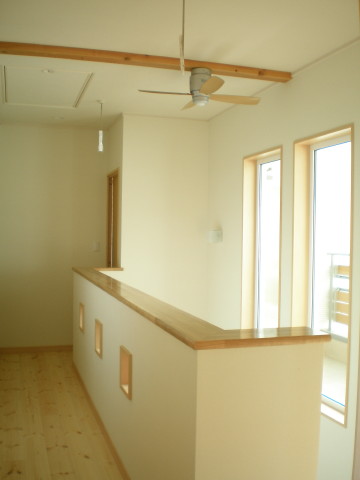あまりにも素敵なので見学会前に少しお見せしちゃいます♪階段の吹き抜けにあるシーリングファンがポイントです☆