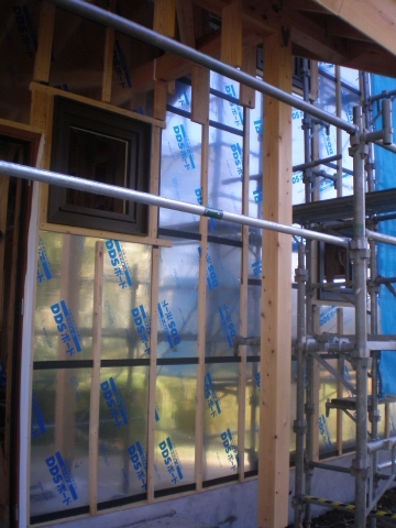 今回は両面に輻射性能のある特殊アルミシートを積層した複合断熱材を使用した為、見た目がピカピカです!!