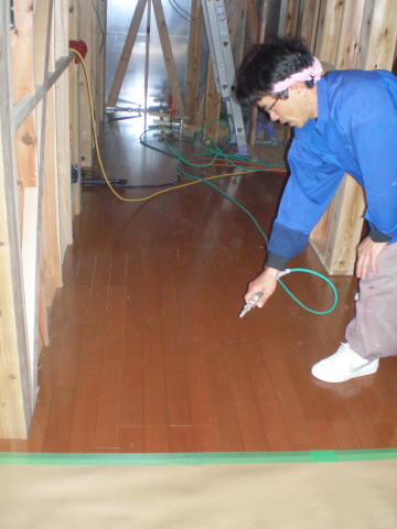 写真撮ります。と言ったら「シュー」っと床をキレイにしてくれました。