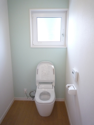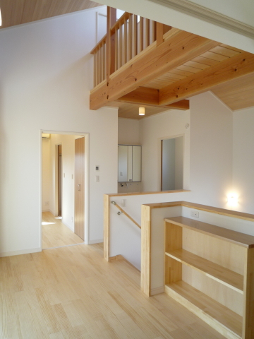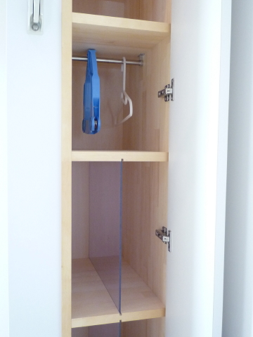 2階ホールの室内干しスペース。右側が造り付けのハンガー収納。