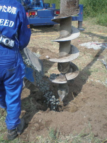 セメントなどの固結材を一切使わず砕石という天然素材だけを利用して地盤を改良するエコ工法。
