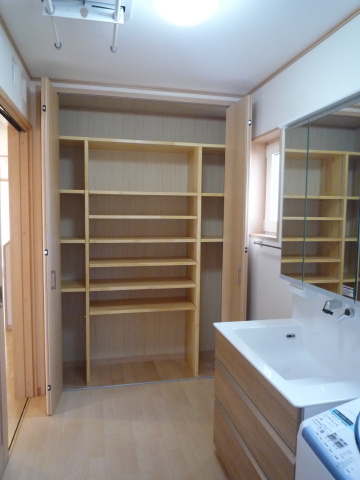 洗面脱衣室の収納の中に棚をつくりました。
