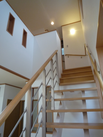 ダイニングからキッチン方向を撮影。左:階段 中央奥:キッチンの勝手口が写ってます。