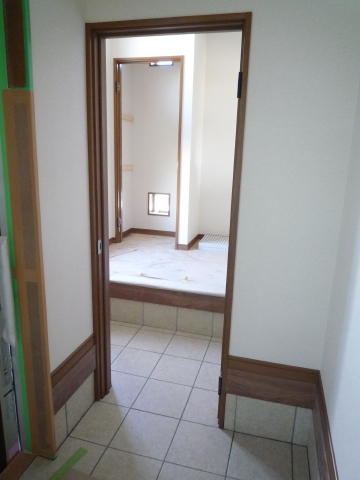 ここで外壁をサイズに合わせてカットします。日陰なので先日の雪が残ってました