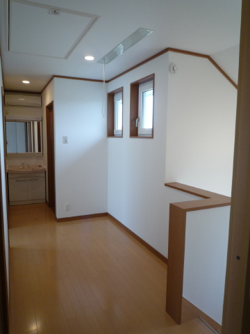 本日撮影に伺いました。写真は2階のホールです。天井から出ている紐を引っ張ると、室内物干しが下りてきます。