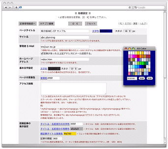 ページのデザインが管理画面から簡単に行う事ができます。記事のタイトル・コメントなどの色やフォントサイズなど、多彩なデザインが可能。