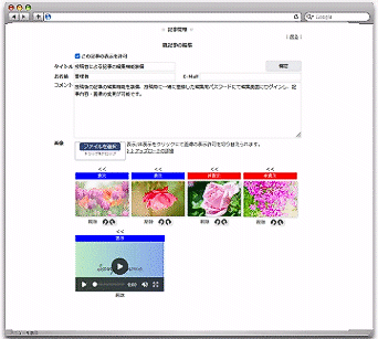 記事投稿の前に、フォームに記入した投稿内容とアップファイルを確認する事が出来ます。画像/動画の表示順番の変更、削除も可能。