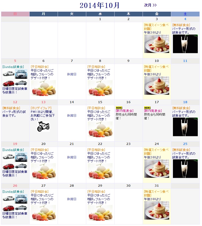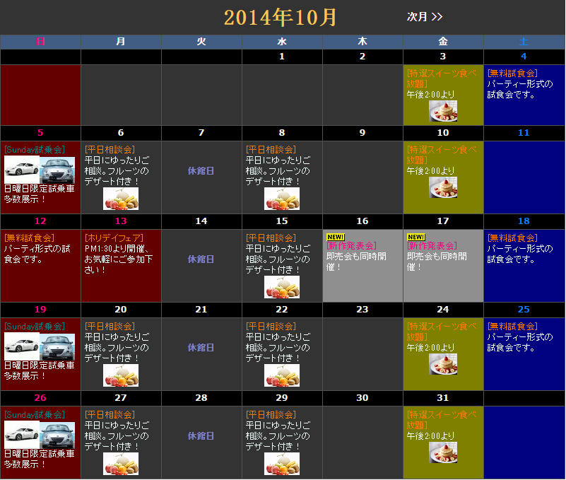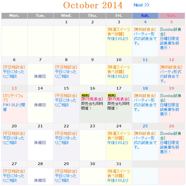 フェア、イベントお知らせカレンダーCGI デザイン例