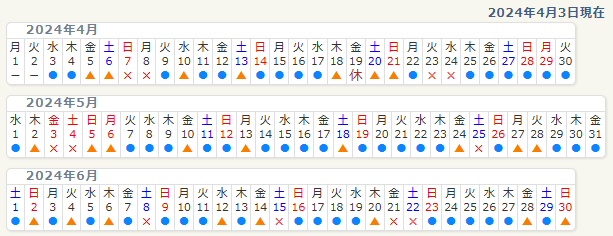 日~土 毎に折り返して表示するオーソドックスなタイプです。カレンダーを横に3個叉は縦に3個のどちらかに切替出来ます。