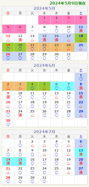予約状況カレンダーType2M デザイン例 Aタイプ