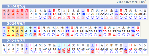 1ヶ月分を横一列に表示するタイプです。 1行にカレンダーを1個表示します。ブラウザの画面幅が設定値以下になると、自動的に左右スクロールでの表示に変わります。