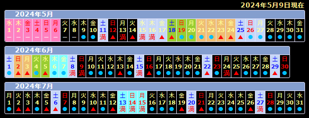 日~土 毎に折り返して表示するオーソドックスなタイプです。カレンダーを横に3個叉は縦に3個のどちらかに切替出来ます。
